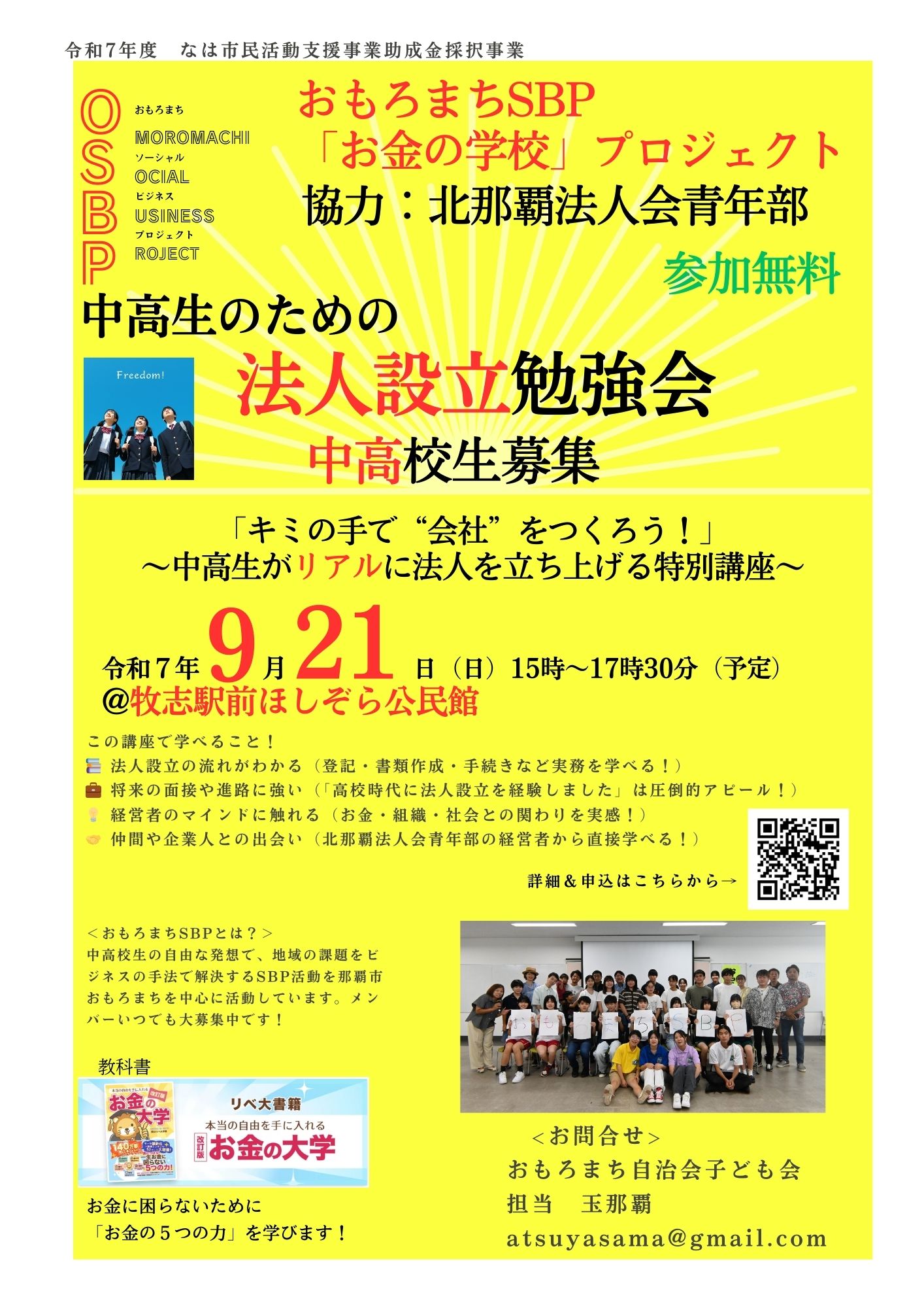 令和7年9月21日(日) 第1回キックオフ! 「法人化ってなに? 〜団体から法人へ〜」 | 〇任意団体と法人の違い(信用力・契約・口座開設・助成金) 〇法人格を持つことのメリット・デメリット 〇法人の種類(株式会社・合同会社・一般社団法人など)と学生団体に向いている形態について考える | 司法書士(北那覇法人会青年部員) |